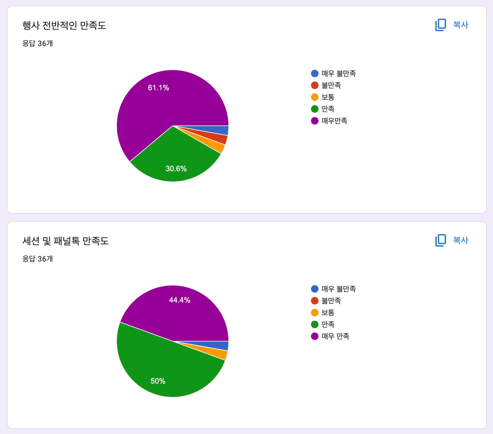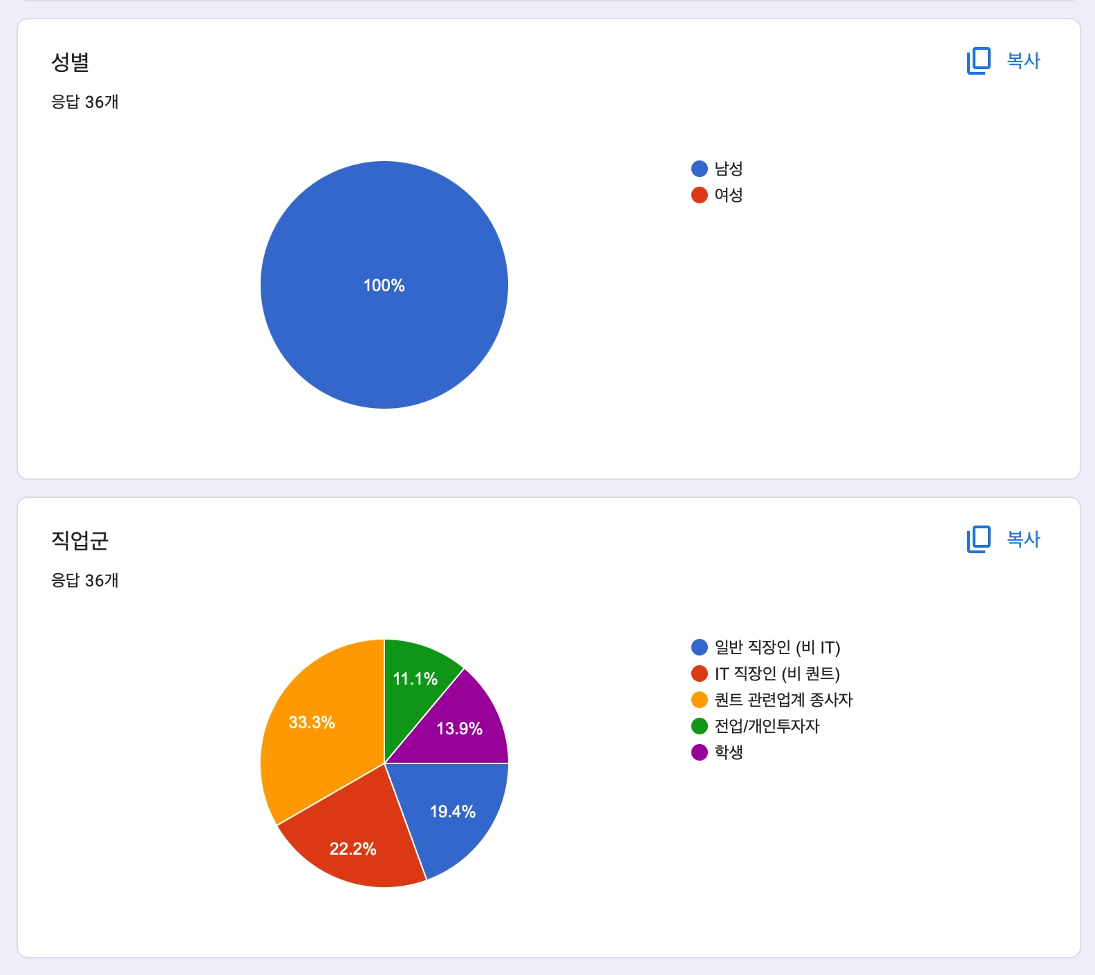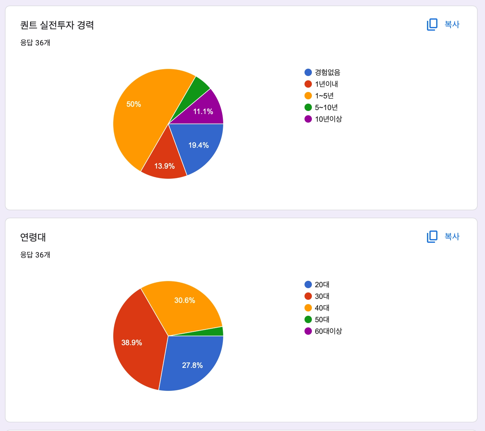총 36명 답변, 응답률 28%