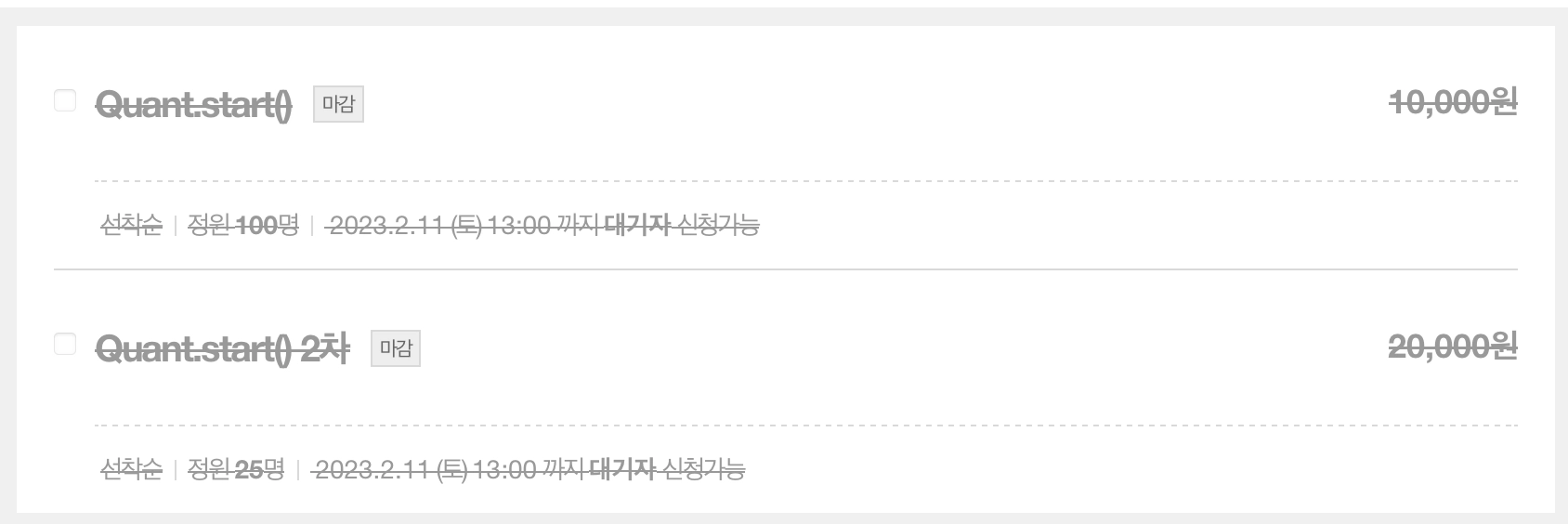 혹은 상단 Quant.start() 카톡방에서 방장을 호출해주셔도 좋습니다.