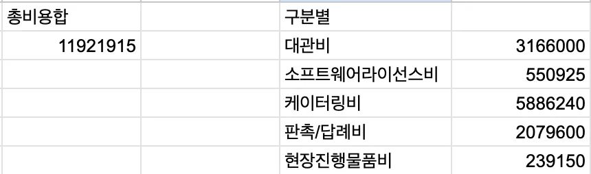 구분별 비용계산서