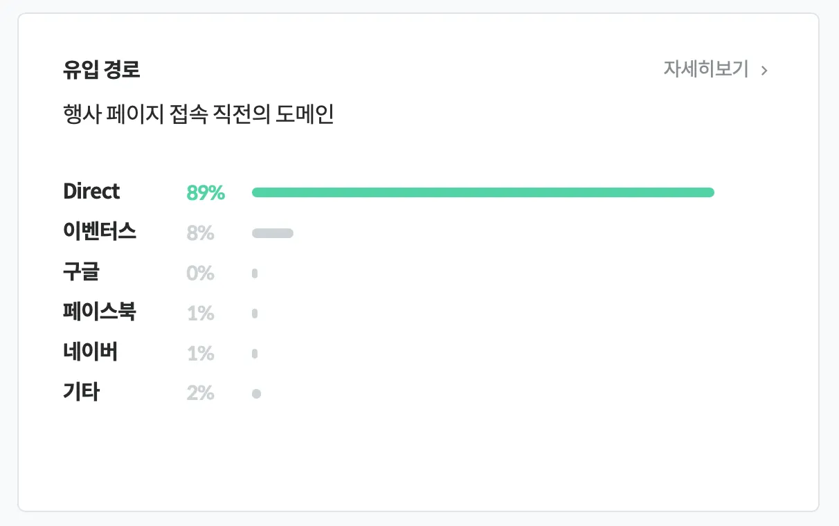 페이지 유입 경로: 89% organic
