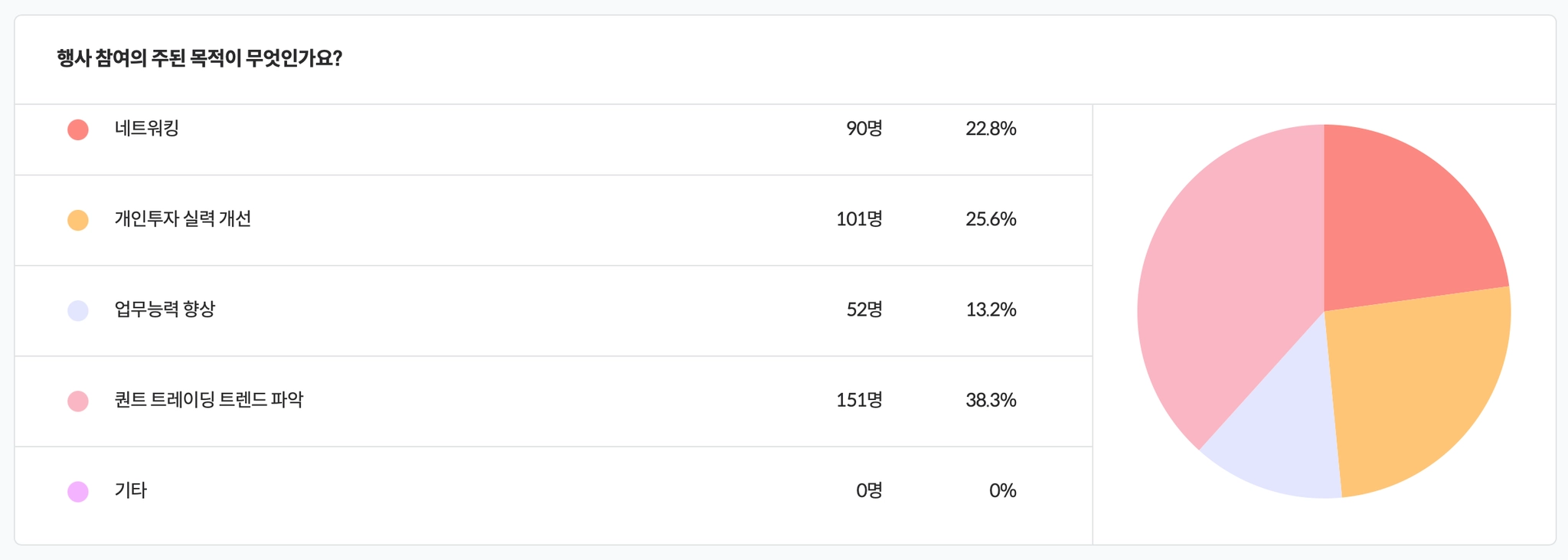 한국 최대 퀀트 커뮤니티인 Quant.start() 에서 주최하는 퀀트 컨퍼런스입니다. 다양한 퀀트 관련 최신 정보, 인사이트, 네트워킹 기회가 있는 행사로 만들어 나갑니다.