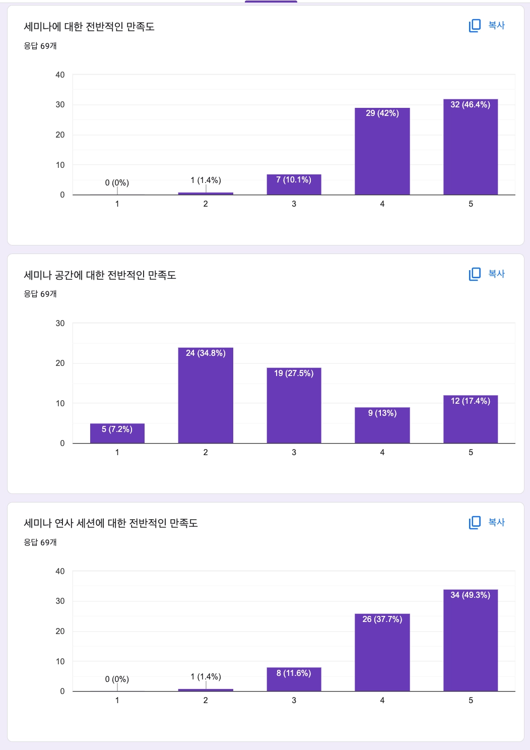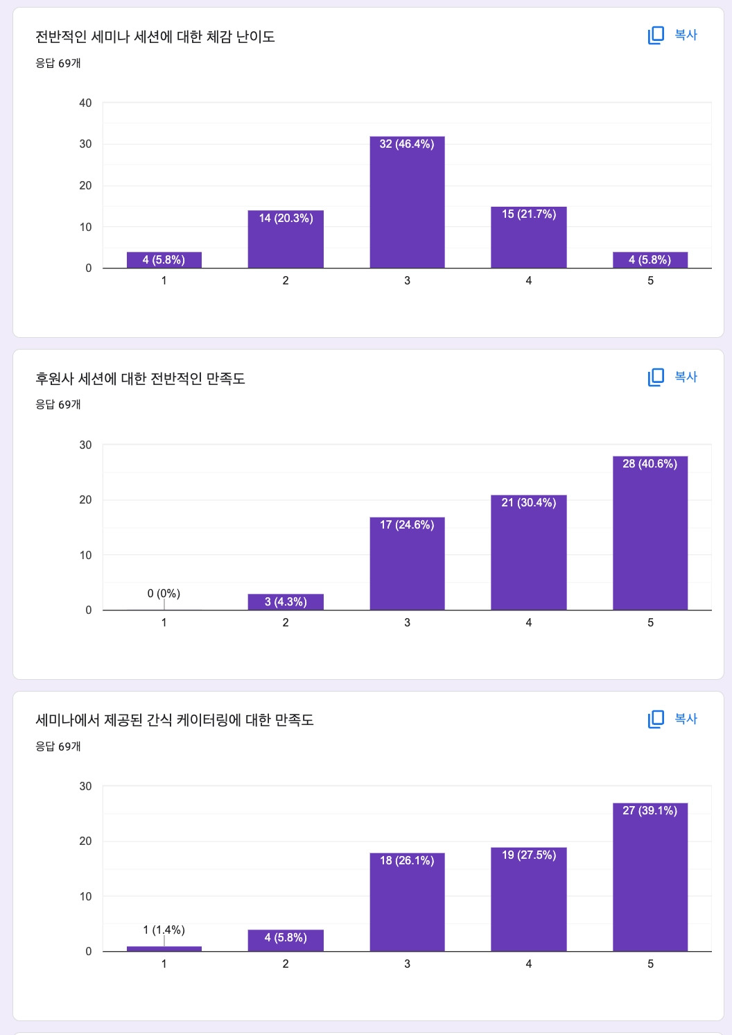 세미나를 통한 정보 습득에 대체로 가장 만족 (59.4%)